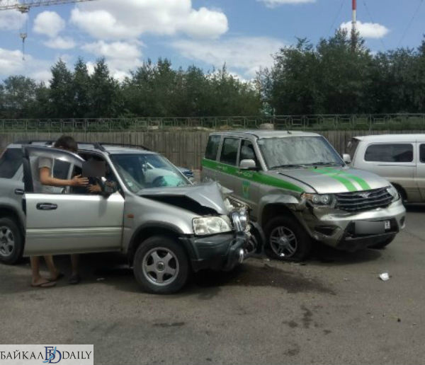 Сегодня в 11.50 часов в центре Улан-Удэ на улице Борсоева произошло ДТП с участием автомобиля УФССП по Бурятии. Столкнулись УАЗ Патриот, принадлежащий службе судебных приставов, и Honda CR-V.