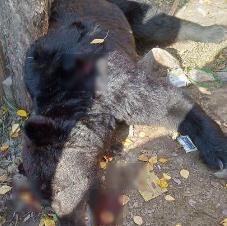 В Бичуре сельчане застрелили медведя. Скорее всего он вышел к людям от голода, так как выглядит весьма истощённым. Фотография застреленного медведя появилась в паблике ves_ulan_ude_