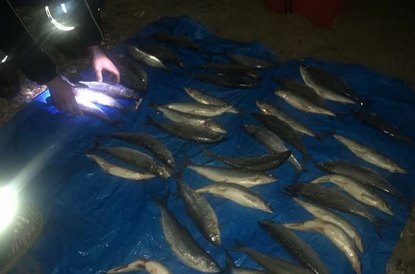 В ходе осмотра прибрежной зоны были обнаружены бесхозные сети длиной 770 метров, в которых находилось ещё более 550 штук омуля.