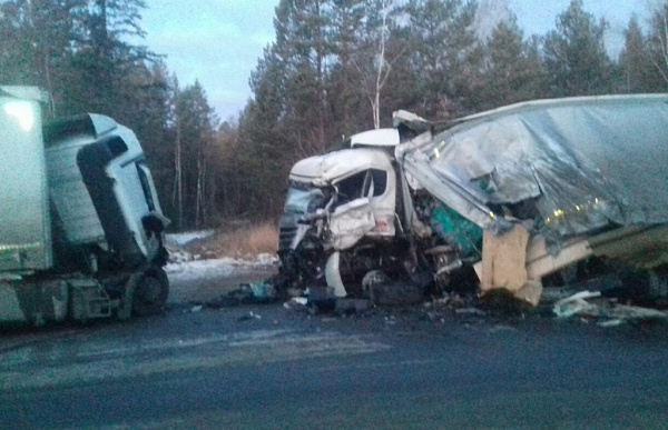 Накануне около 23 часов лоб в лоб столкнулись две фуры на 71-м километре трассы Р-258 «Байкал» в Шелеховском районе Ирутской области.