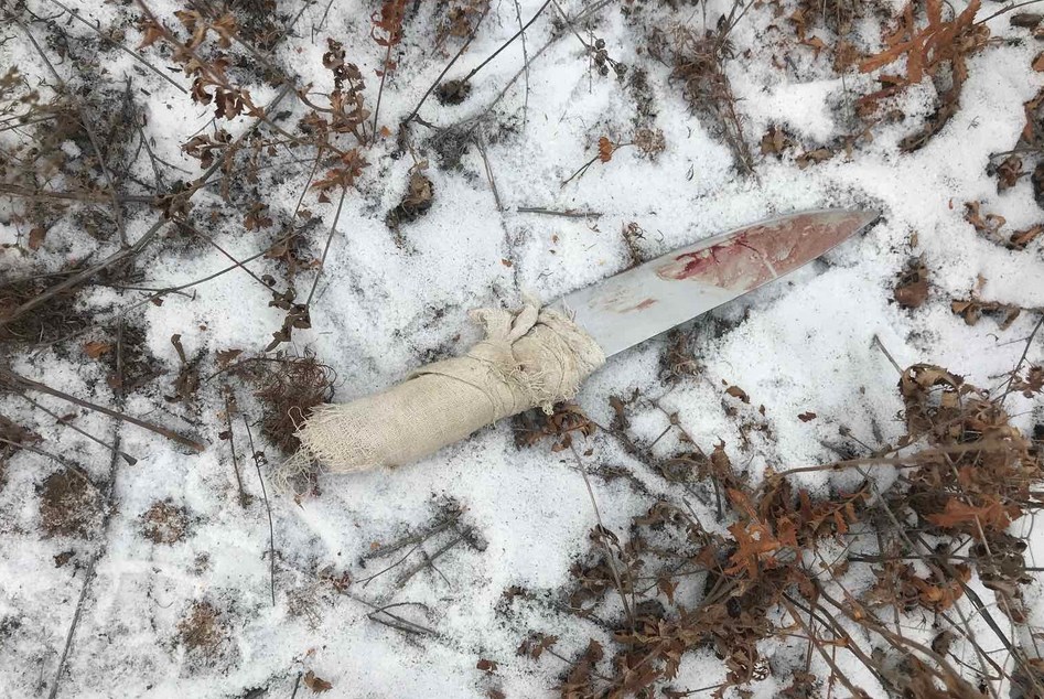 Убийца на улице выбросил нож во двор к соседям, затем накрыл тело жертвы одеялом, и сам лёг спать.