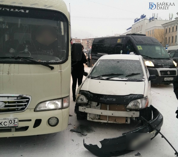 Накануне, 11 декабря, около 16:00 на площади Советов в Улан-Удэ столкнулись автобус «Хёндай Каунти» и «Тойота Платз». По словам очевидца аварии, за рулём легковушки была девушки. Водители долго спорили, выясняя обстоятельства ДТП. Вину из никто не признавал.