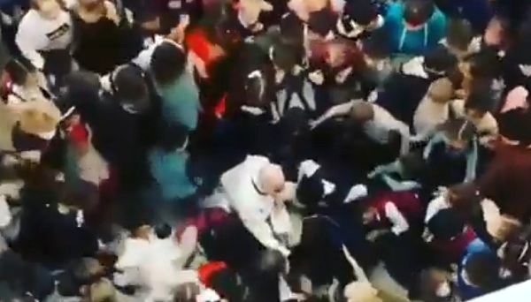 Тут-то и произошёл инцидент. Дети налетели на актёра, содрали с него головной убор и с криками выхватывали конфеты. Школьники буквально облепили его и не давали прохода, пока не забрали все сладости.