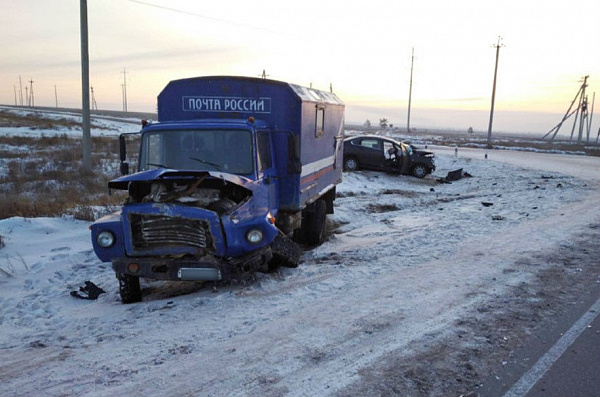 На фото – ДТП 2 января в Заиграевском районе с двумя пострадавшими. Грузовик уже не принадлежит «Почте России», новый владелец купил его и пока не перекрасил.
