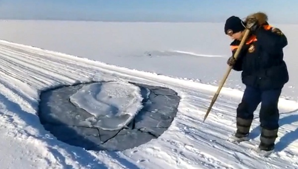 13 февраля в четырёх километрах от села Посольское в Кабанском районе Бурятии байкальский лёд не выдержал судно на воздушное подушке. Причиной тому стали бьющий под водой источники природного газа.