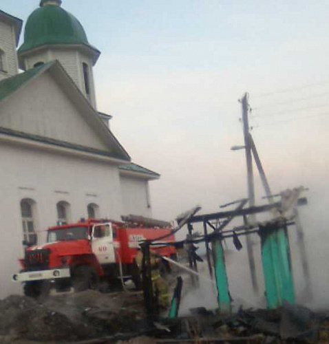 Сегодня в 06:55 утра в селе Мухоршибирь на пульт пожарной части поступило сообщение о возгорании надворной постройки на территории храма святителя Николая архиепископа Миркилийского.