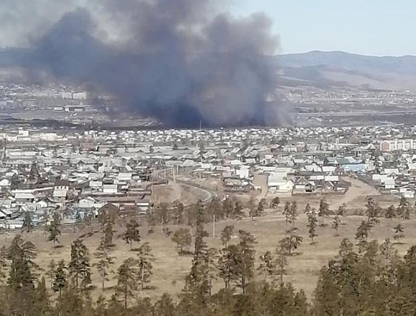 Густой чёрный дым видно из разных частей Улан-Удэ