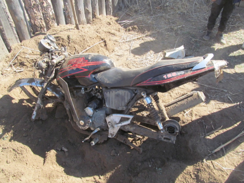 Затем, угрожая подросткам, что сообщит о них в полицию, заставил их разобрать мотоцикл по частям и закопать у себя в огороде.