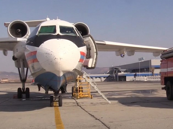 Экипаж направил воздушного пожарного к месту возгорания. Спустя несколько минут самолёт прибыл на пожар. Оценив обстановку и убедившись, что в районе сброса людей и техники нет, капитан корабля дал команду на слив воды. На огонь обрушились более 10 тонн воды, отчего интенсивность горения резко снизилась и пожарные приступили к дотушиванию кромки.