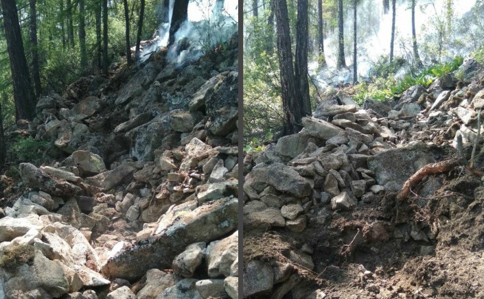 - На пожарах дожди прошли незначительные. Сильного горения нет, но кромка дымится. В любом случае будем дорабатывать. По пожару в Улюнском участковом лесничестве – по южной кромке дорабатываем, 2 километра вручную обрабатываем – там склон крутой, местами до 40 градусов, каменистые россыпи и, соответственно, подстилка толстая. Тут еще дождик помог и не помог одновременно, то есть мы сегодня планировали начать отжигаться. Подстилку промочило, но надеемся, что продует, и мы сможем это сделать. Самое главное сейчас – не расслабляться. Дождь идёт, нужно работать. В дождь, как никогда, нужно работать, так безопаснее и нет активного распространения и не нужно ждать, что дождь все потушит. Дождь сегодня может притушить, завтра прогреет и опять все возобновится, – отметил зампред правительства по вопросам безопасности Петр Мордовской.