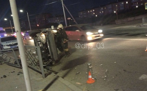 Накануне вечером в 105 микрорайоне Улан-Удэ произошло ДТП, в результате которого один автомобиль встал на бок.