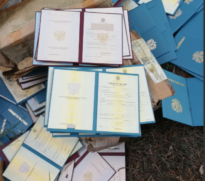 Также судя по фото, можно сделать вывод, что в лес выбросили только незаполненные корочки, имён и других личных данных нет. Согласно федеральному закону «О персональных данных», при обработке персональных данных должны предприниматься необходимые меры для их защиты и утилизации. Это, впрочем, не отменяет ответственности за нелегальную свалку в лесу.