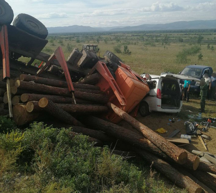 По предварительной информации, 41-летний водитель «КамАЗа», перевозивший лес, на 49 километре автодороги Улан-Удэ-Кяхта, в районе села Нижний Убукун, выехал на полосу встречного движения. Здесь он врезался в минивэн «Ниссан Сирена» под управлением 37-летнего жителя Улан-Удэ.
