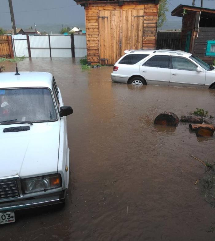 Накануне в Мухоршибирском районе днём шёл сильный ливень и град. Из-за скопления осадков на горной местности вода хлынула и подтопила участки села Никольск и зашла в подполья домов.