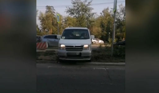 На кадрах видно, как водители, двигаясь по улице Лимонова, выезжают на полосу встречного движения улицы Октябрьская, далее по пешеходному переходу и тротуару на разделительной полосе с газоном и кустарниками поворачивают на свою полосу.