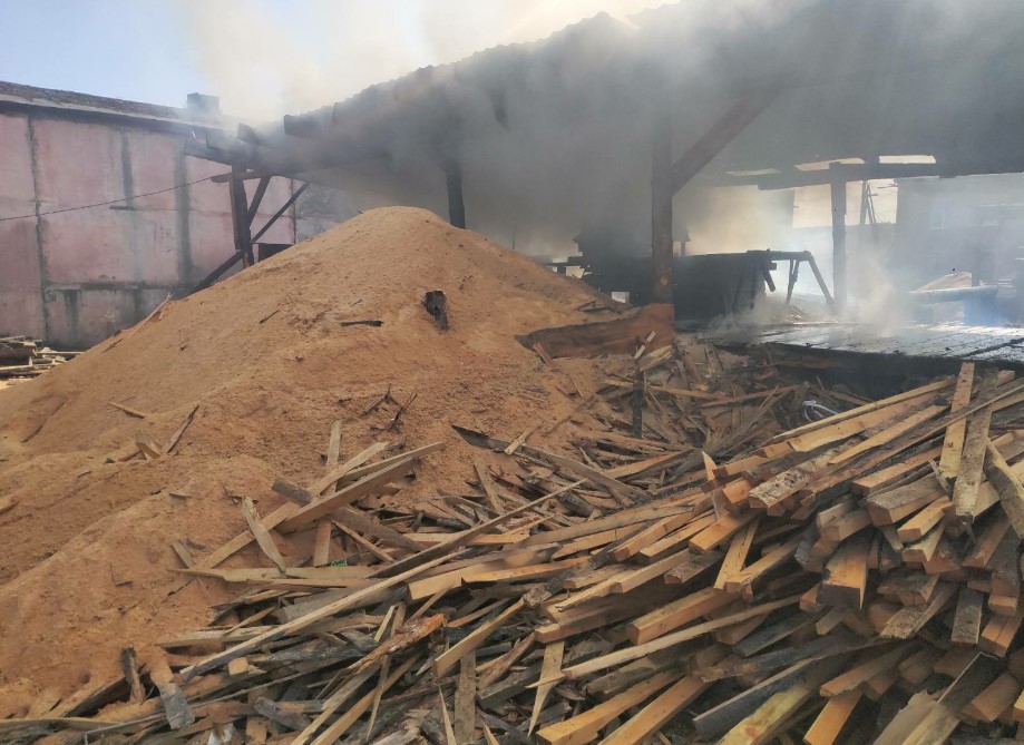 Пожарные оперативно ликвидировали возгорание, не допустив распространения огня. Огонь повредил пильный станок и пиломатериалы на площади 20 кв.м.