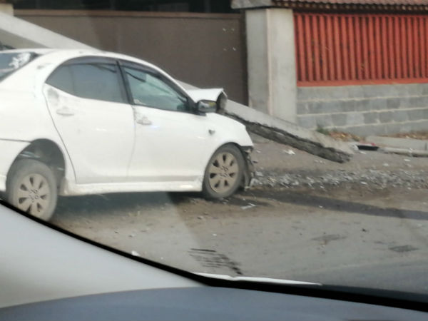 Сегодня на улице Бабушкина, в районе мемориала воинам, умершим от ран в госпиталях Улан-Удэ, очевидцы обнаружили сбитую электроопору, повисшую на проводах. Автомобиль виновника произошедшего был здесь же – это белая «Тойота Аллион», повреждённая после наезда на опору. Однако водителя на месте не оказалось. Очевидцы предполагают, что он убежал, так как, возможно, совершил аварию, будучи пьяным.