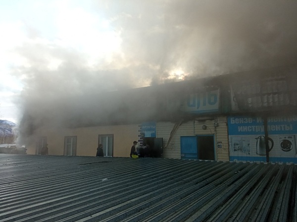Вчера, 11 октября, в посёлке Таксимо Муйского района Бурятии произошёл пожар в здании с торговыми и складскими помещениями. На момент прибытия пожарных здание горела кровля и здание изнутри, существовала угроза распространения огня по другим помещениям здания.