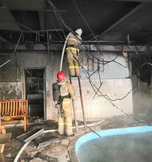 В результате пожара выгорело парильное помещение, в нём частично уничтожены конструкции потолка, оплавлены восемь пластиковых дверей и натяжные потолки, закопчены комната отдыха и санузел.