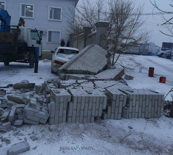 Кирпичами засыпало стоявший под забором автомобиль «Тойота Корона Премио». По информации «Байкал-Daily», в салоне в этот момент сидели две девушки.