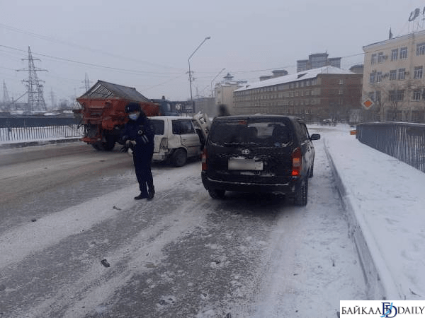 Накануне, 16 января, произошло ДТП в центре Улан-Удэ, напротив здания республиканской типографии. Водитель «Мазды Демио» ехал в сторону рынка «Динамо», когда на съезде с моста на Борсоева не справился с управлением. Всё произошло на скользкой дороге. Машина выехала на полосу встречного движения, где лоб в лоб столкнулась с «Тойотой Пробокс».