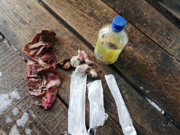 Из гаража полицейские изъяли посуду и приспособления для изготовления ацетилированного опия. Изъяты металлические миски, кастрюля и пакет с отработанным пищевым маком, пустые бутылки из-под разбавителя, а также шприц и вскрытые упаковки для шприцев.