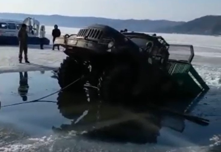 Накануне днём, 5 апреля, на озере Байкал, возле Листвянки, провалились под лёд два грузовика «Зил-131», гружённые досками.