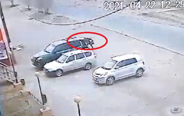 Произошедшее запечатлела видеокамера. На видео видно, что мужчина шёл по дороге, шатаясь. В какой-то момент он случайно упал прямо под колёса автомобиля. Вскоре из здания вышел водитель внедорожника. О том, что почти под его машиной лежит человек, он не догадывался, а потому начал движение.