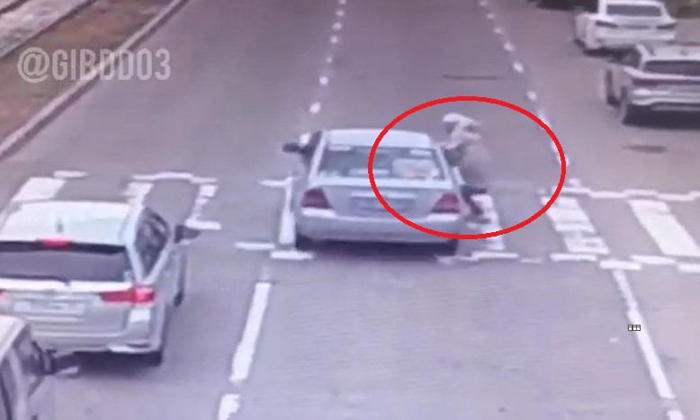 Сегодня днём на улице Балтахинова в Улан-Удэ была сбита 63-летняя женщина. Камера запечатлела, как она бежала по «зебре», пытаясь проскочить перед близко едущим автомобилем, но не успела.
