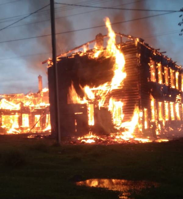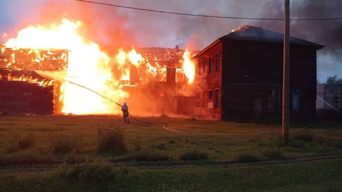 Ранним утром 27 июня в селе Тунка в Бурятии произошёл крупный пожар. Горело двухэтажное брусовое здание, где раньше была школа.