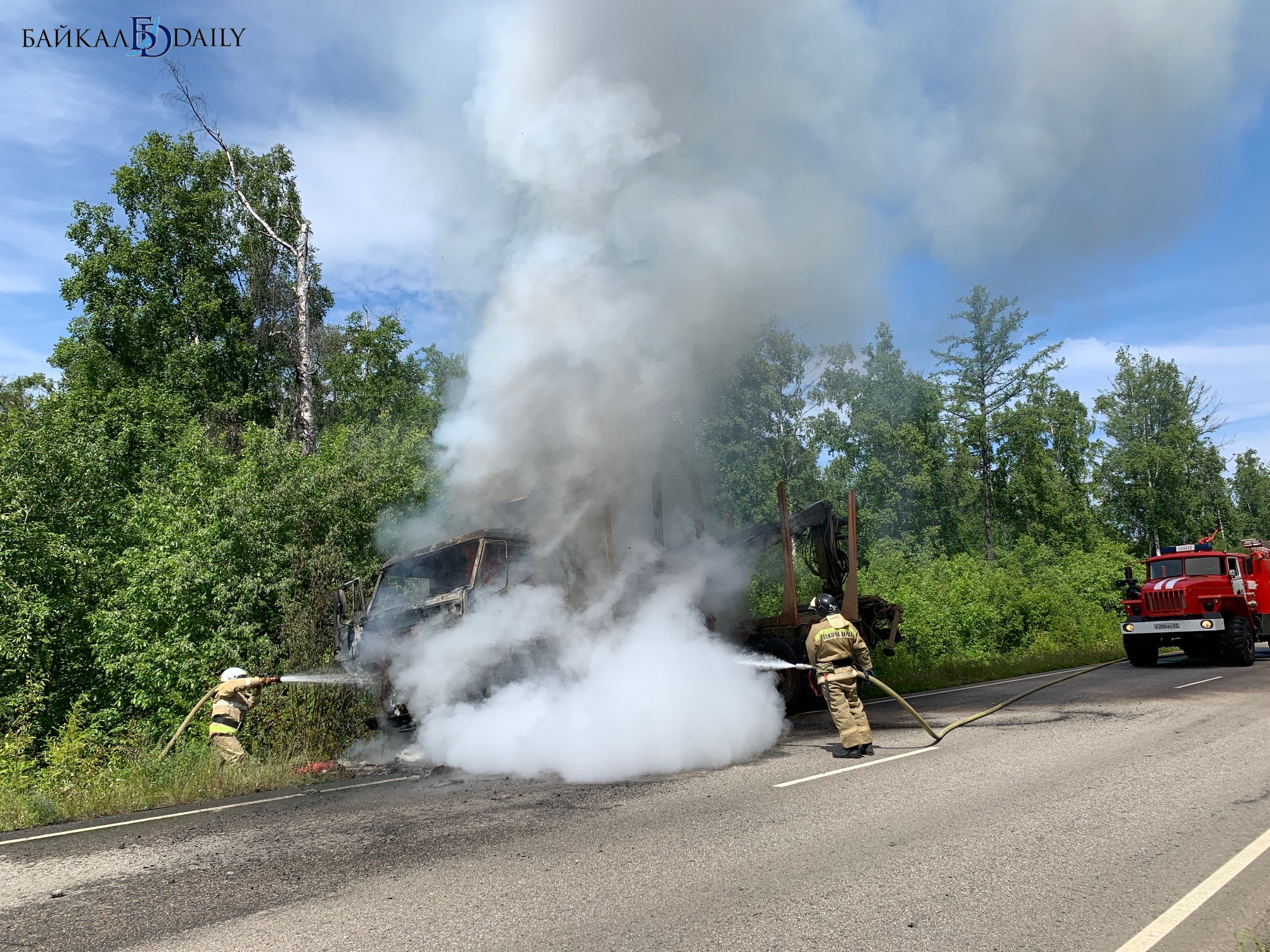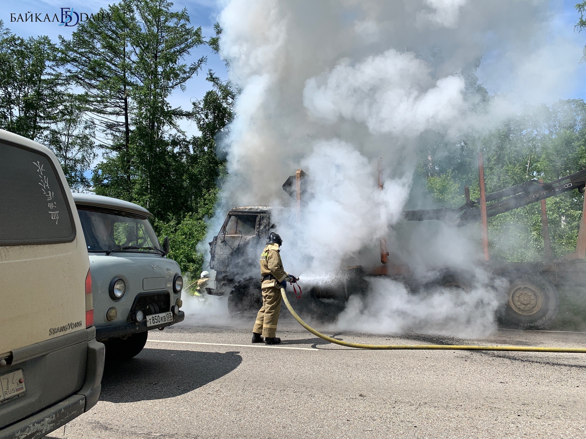 Сегодня во второй половине дня в Прибайкальском районе Бурятии на трассе Улан-Удэ Курумкан вблизи села Турка, на дороге, ведущей на Байкал, загорелся грузовик. Столбы дыма видны далеко вокруг.