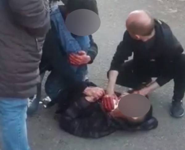 Молодой человек истекал кровью, лёжа на земле. Он терял сознание и стонал от сильной боли. Его друг, глотая слёзы, пытался помочь, подняв ноги раненому. На помощь бросился прохожий – он руками зажимал рану на шее, из которой хлестала кровь. Другие прохожие вызвали «скорую» и очень переживали, что она может не успеть.