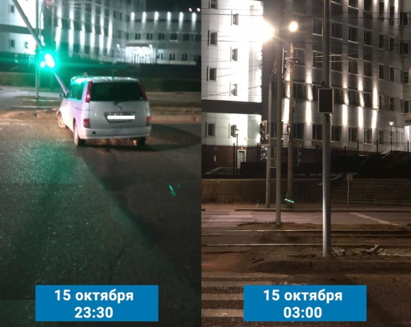 Сотрудники МБУ «Горсвет» в 23:30 приступили к работе по замене светофорной стойки, и уже к 3:00 ремонтные работы закончились.