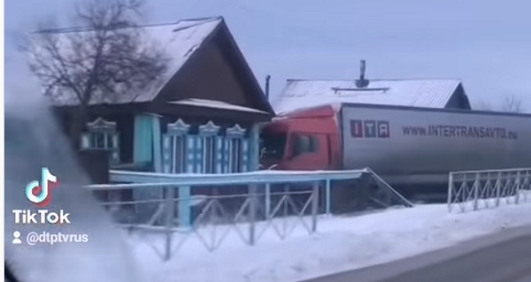 Сегодня днём в селе Тресково Кабанского района Бурятии произошло необычное ДТП. Фура съехала с проезжей части и едва не снесла жилой дом. Большегруз фактически «упёрся» в стену дома. Видео с места происшествия опубликовали в аккаунте dtp_03.