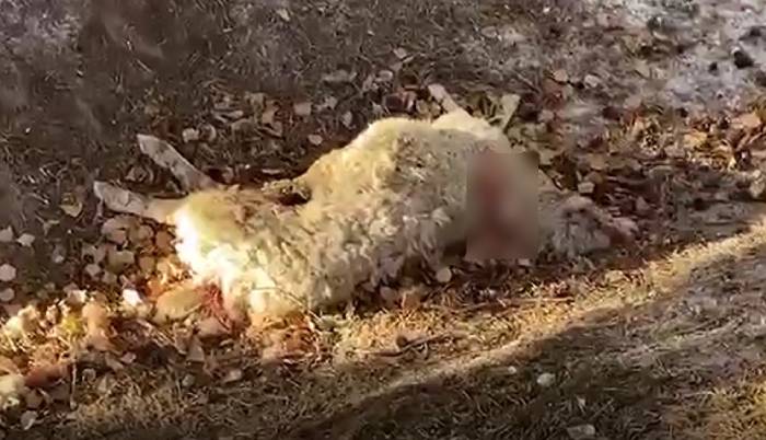 Очевидцы сняли на видео убитого волка барана. Видео сделано недалеко от леса. «Сегодня они, наверное, точно вернутся за мясом», - встревоженно говорит за кадром женщина. Она просит устроить засаду на хищников.