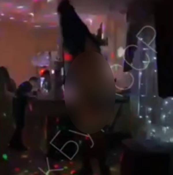 Люди, которые находятся в зале, начинают кричать от удивления, или, может быть, от восторга. Женщина на видео осталась только в чулках и сапогах. Верх её тела оказался полностью голым, но это нисколько не смутило танцующую, и она продолжила веселиться.