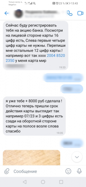 В переписке женщина более 10 раз сообщила собеседнице приходящие коды подтверждения.
