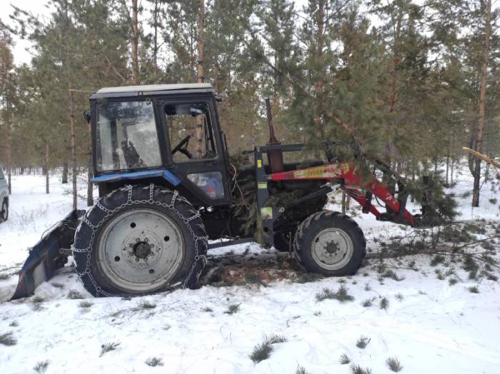 Полицейские изъяли срубленные деревья, трактор, бензопилу.