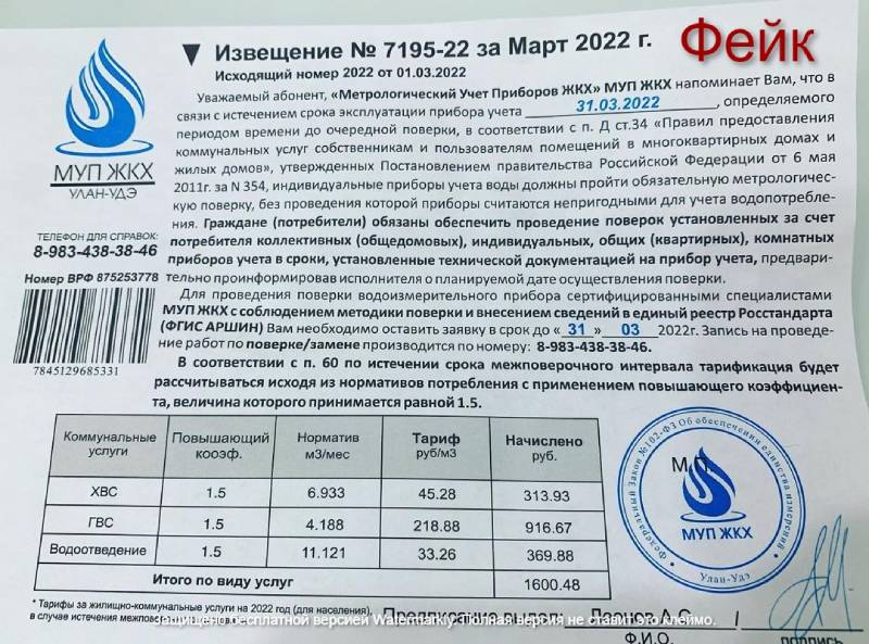 В Улан-Удэ зафиксирован массовый вброс в почтовые ящики горожан уведомлений от мошенников. Они требуют проведения срочной поверки или замены приборов учета воды у жильцов многоквартирных домов.