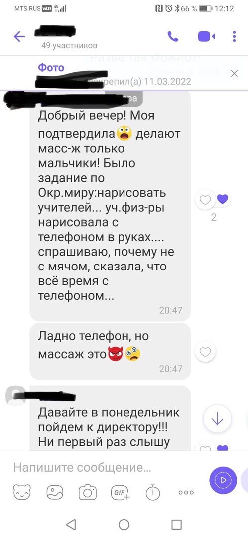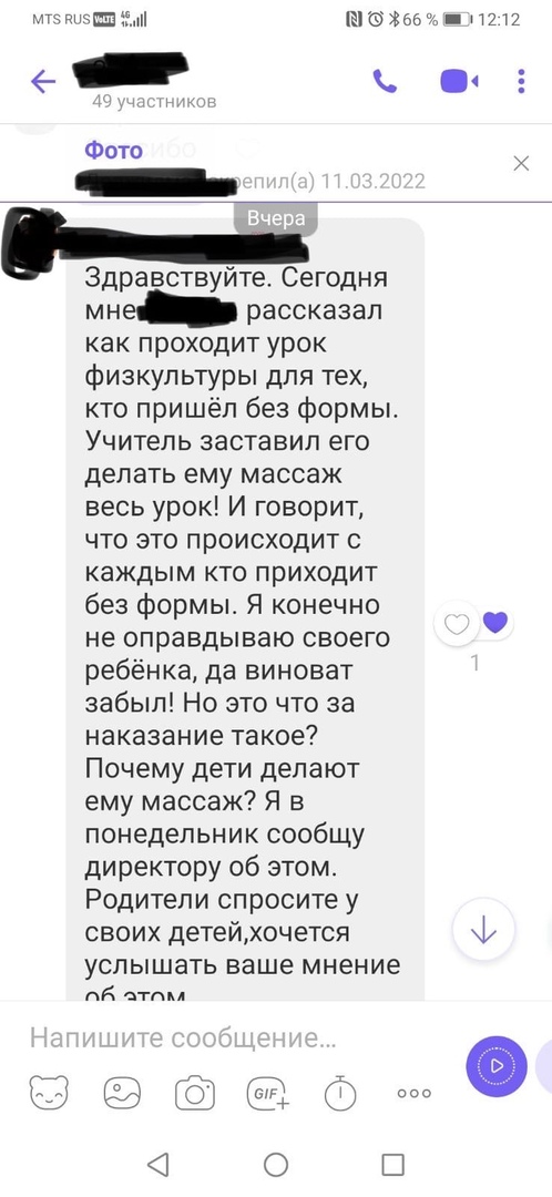 В Улан-Удэ развернулся скандал вокруг школы в одном из городских посёлков. В паблике «Аноним 03» опубликовали скриншоты из родительского чата. На них мать школьника утверждает, что учитель физкультуры просит детей делать ему массаж. По словам матери, массаж «назначается» якобы в наказание – например, за отсутствие спортивной формы.
