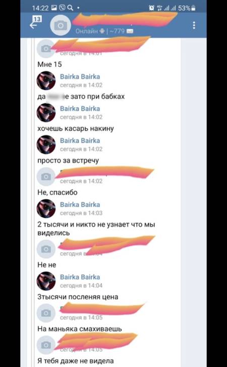 - Моей дочери, которой 15 лет, кто-то написал и предложил погулять, выпить, а узнав, сколько ей лет, начал предлагать деньги за встречу. Прошу вас опубликовать переписку, чтоб все знали, как домогаются педофилы. Будьте бдительны и сморите с кем переписываются ваши дети, - написала обеспокоенная женщина.