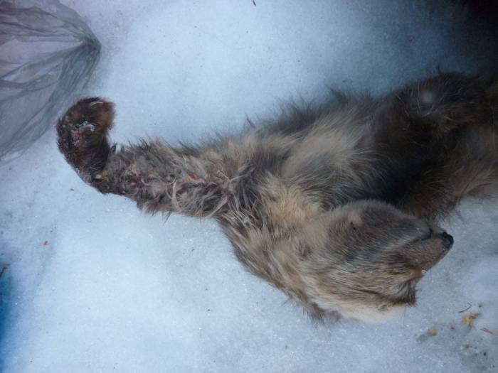 Государственный инспектор определил, что пушной зверь добыт запрещённым способом – ногозахватывающими капканами. На фото видно, как переломило лапки соболя.