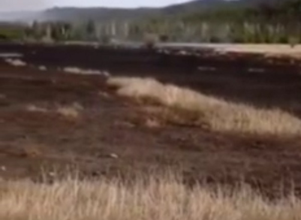 Пожар начался от трассы и по сухой траве распространился в сторону леса. Этому способствовал сильный ветер.
