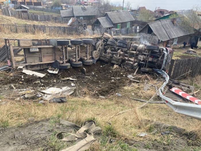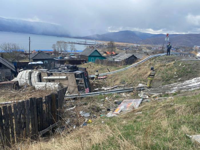 Утром на 97 километре федеральной трассы Р-258 «Байкал» в Слюдянском районе Иркутской области произошло ДТП с большегрузом, который перевозил бетонные столбы. Он съехал с дороги и опрокинулся в кювет.