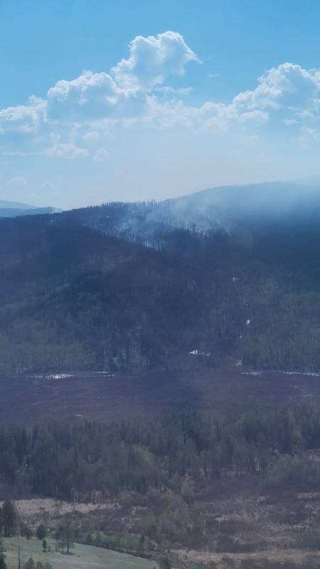 В Закаменском районе Бурятии продолжается тушение сложного лесного пожара. Как сообщал «Байкал-Daily», лес загорелся, предположительно, из-за сухой грозы. Пожар возник на самой вершине горы, и огонь пошёл вниз.