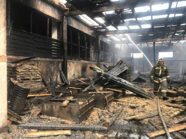 Сгорела кровля здания на общей площади 690 квадратных метров, повреждены помещения изнутри.