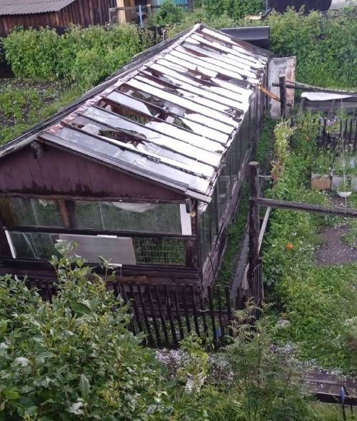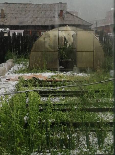 Крупный град повредил автомобили, разбил теплицы и уничтожил посадки на огородах.