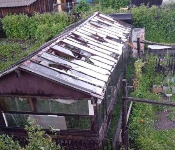 Крупный град повредил автомобили, разбил теплицы и уничтожил посадки на огородах.