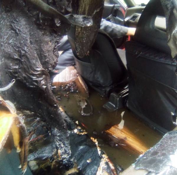 Выгорела задняя часть автомобиля. Ущерб устанавливается; известно, что машина не была застрахована.