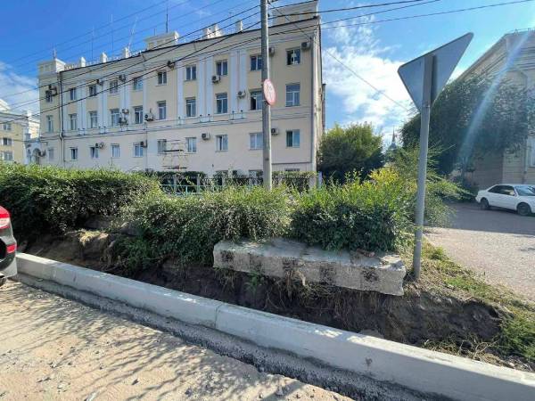 В Улан-Удэ подрядчик, ремонтирующий дорогу на проспекте Победы, повредил живую изгородь. Во время ремонта рабочие складировали бетонные блоки прямо на кустарниках.